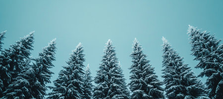 Serene Winter Tranquility with Tall Evergreen Trees Under a Cool Icy Sky in a Snowy Landscape