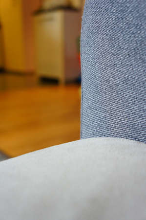 Gray couch surface background with buttons. Sofa pillow detail, close up