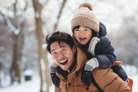 Happy family having fun while travel outdoor in winter enjoying time together comeliness