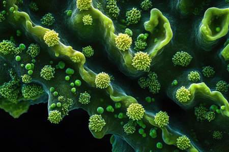 Vivid Green Virus Particles Captured in Close-Up