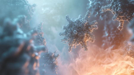Microbes of different shapes, 3D illustration. Group of microorganisms. Digital art. Picture render by neural network.