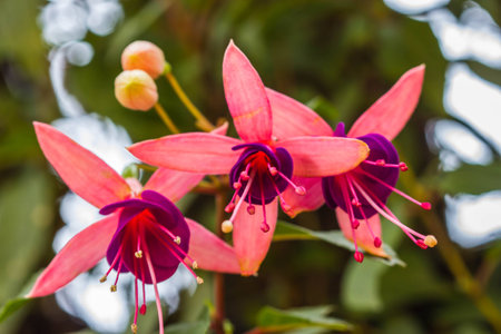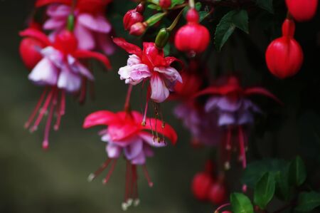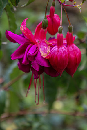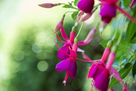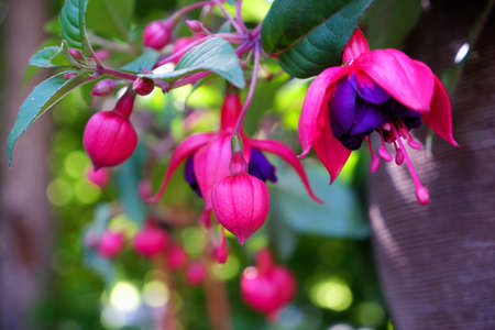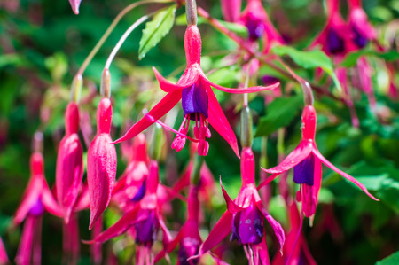 Beautiful fuchsia flowers in the botanical garden
