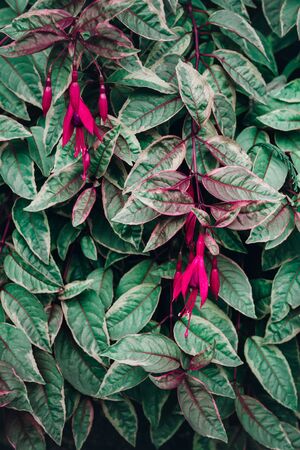 Fuchsia leaves and flowers texture, dark moody style