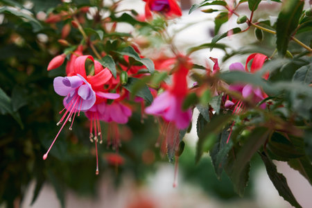 Beautiful Fuchsia flowering plant close-up