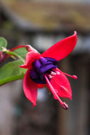 Fuchsia in bloom, with different colors in the petals.