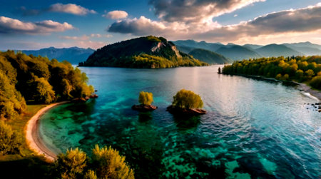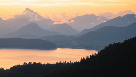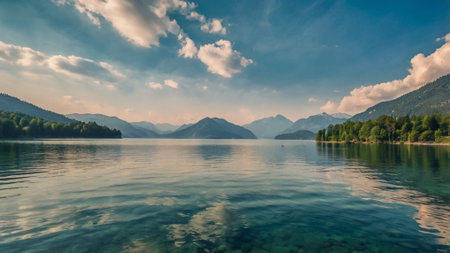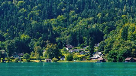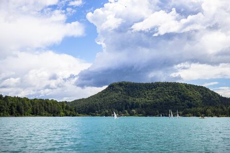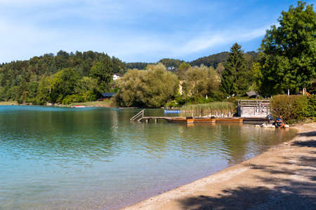 View of beautiful lakes located in the Austrian Alps. The largest and most famous lakes include the famous Wörthersee and Ossiachersee, where you can enjoy both swimming and vibrant evening entertainm