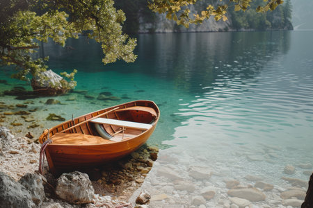 Wooden boat on Walchensee lake in Bavarian Alps