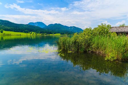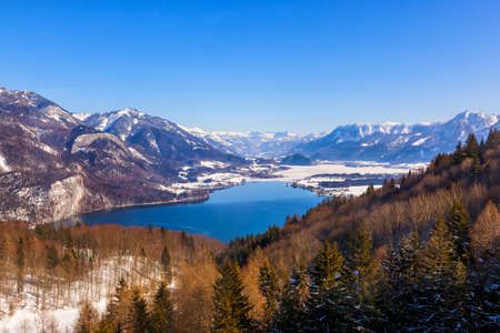 Wolfgangsee mountain lake in Austrian Alps. Austria landscape in Salzkammergut region.