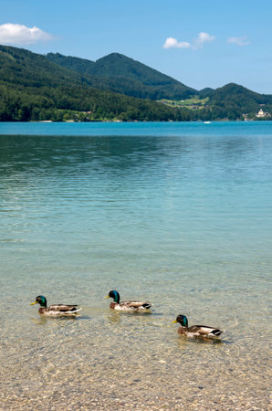 Mallards swimming in the Fuschlsee at Fuschl in Austria.