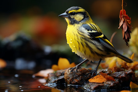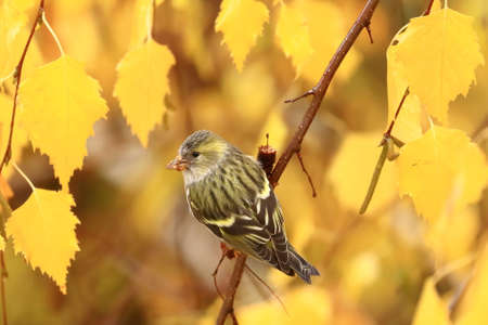 Siskin perched on a branch in autumn