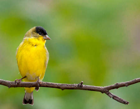 Pine Siskin (Carduelis pinus) perched with a green background