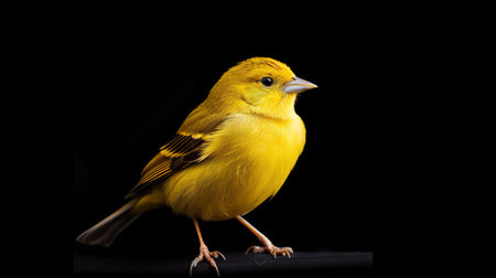 Beautiful yellow canary bird isolated on black background, canary