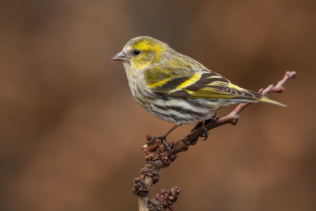 Siskin (Carduelis spinus) perched on a branch