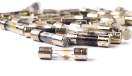 a bunch of blown fuses on white background, macro, shallow depth of field