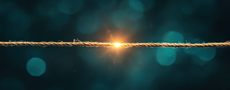 close up of tightrope illuminated by glowing light, creating dramatic effect.