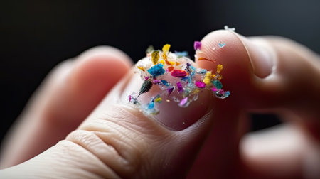 Small Plastic pellets on the finger. Micro plastic. Water pollution, ai generative