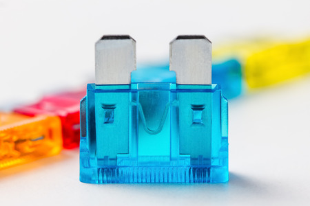 Electrical automotive fuses for car on white background