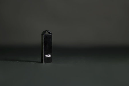 A closeup shot of a black data storage on a dark background