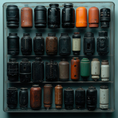 A captivating flat lay of vintage electronic components showcasing various textures and colors. Ideal for technology enthusiasts and design inspiration.