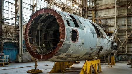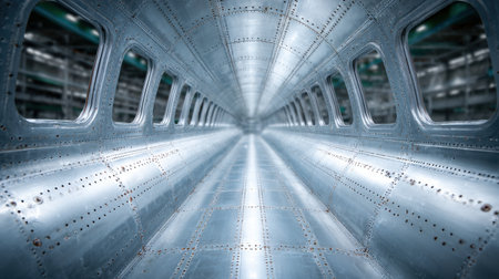 Interior of a Spacious Aircraft Fuselage Showing the Metal Structure for Potential Engineering and Construction Projects Generative AI