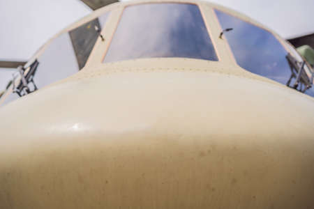 Detail shot with the cockpit of a big military airplane