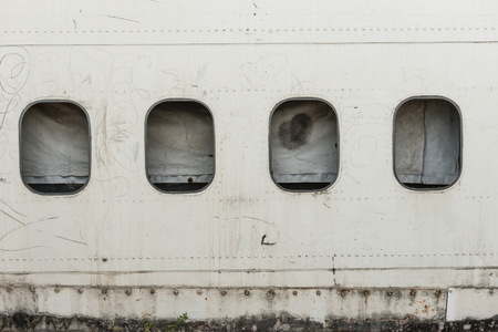 Airplane wreckage windows parts, taken on a sunny day, useful for plane safety, pilot, flights, air craft, aero space industry, travel, holiday, insurance related concepts