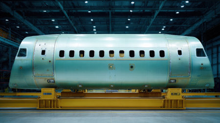 Precision Engineering in Aerospace Manufacturing Facility Showcasing Aircraft Fuselage Assembly and Detailed Craftsmanship Generative AI