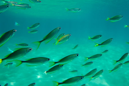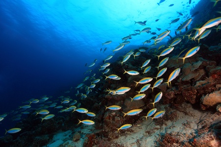 Shool of yellowback fusilier fish