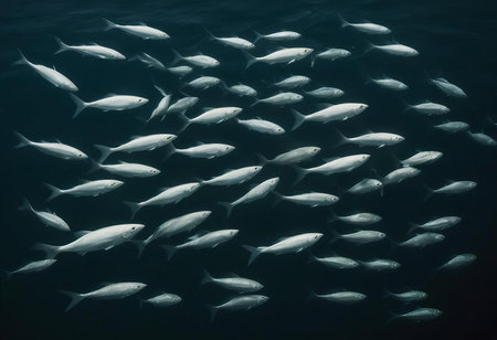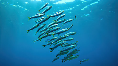 Underwater view of a school of sardines in the ocean