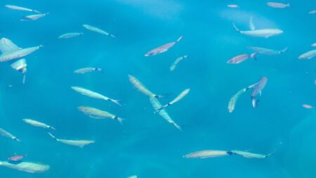 Fish in the blue water of the sea as a background.