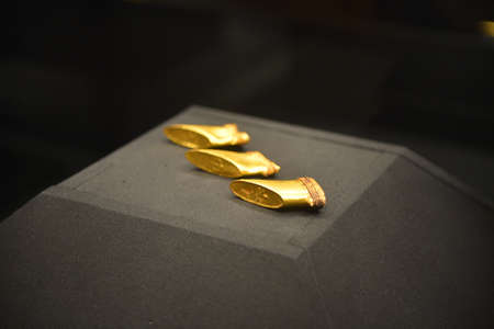Closeup view of the old bullet butts on dark background, soft and selective focus on bullet butts.