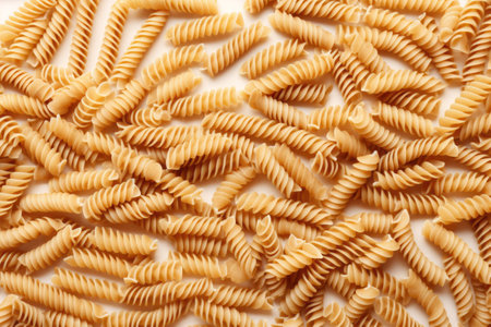 AI Generated. Raw spiral pasta pieces arranged in a pile