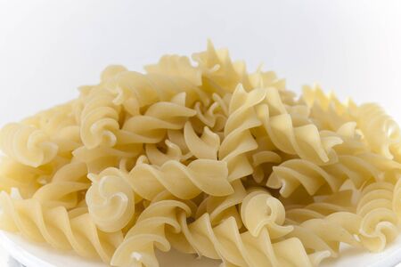 Photo image. Food photography. Italian Fusilli Macaroni Pasta raw food background or texture close up