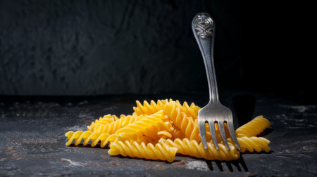 rotini pasta with fork on dark surface generative ai