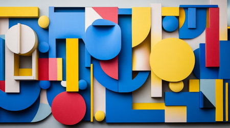 An abstract background with primary colors and geometric shapes.