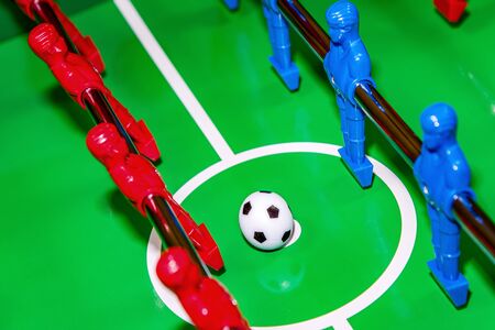 Concept of Board games. Table football game, Soccer table with red and blue players
