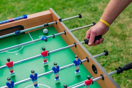 Table soccer. A game of table football. Entertainment for the company.