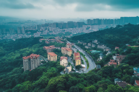 View of urban buildings in Nanning, Guangxi, China from above