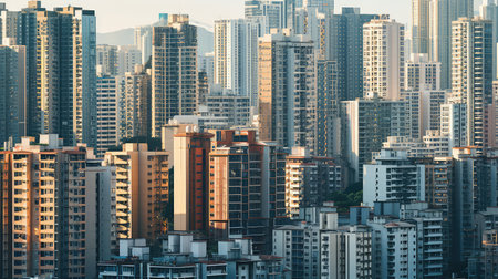 modern high-rise apartment complex against the backdrop of bustling cityscape, created with generative ai
