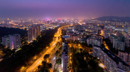 Aerial view of city buildings and parks in Shenzhen, China