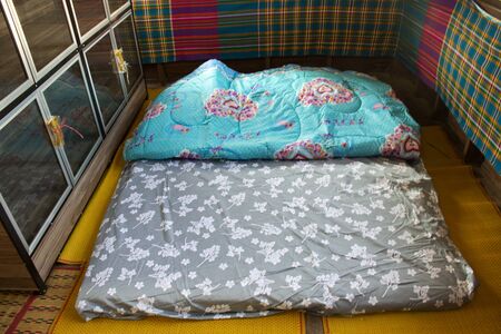 Bed vintage and retro thai style in bedroom of married traditional for groom and bride sleep at home in Yasothon, Thailand