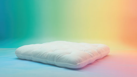 This image features a comfortable white mattress set against a colorful gradient background, emphasizing softness and inviting tranquility for restful sleep.