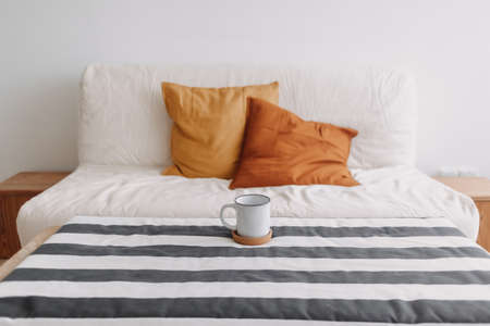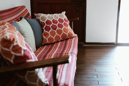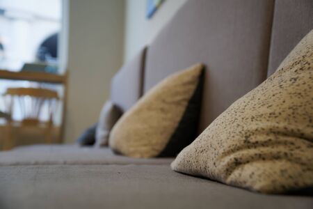 cozy stylish home corner on the sofa with two pillows. you can stay at home to relax and have a good time