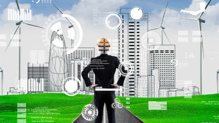 Green city environmental friendly for inventive sustainable development - Businessman leader with vision to build future eco city.