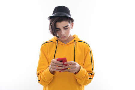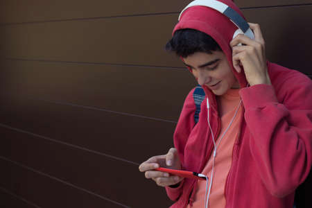 boy with the mobile phone on the street