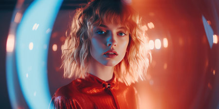 You are your own leader. Portrait of a beautiful young woman against a neon sequinned background.