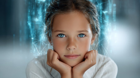 artificial intelligence in the form of a child, future technologies. Artificial Intelligence, Futuristic Digital Technology, Metaverse of Digital Intelligent World.