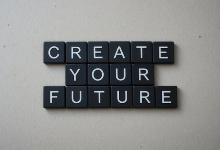 This image showcases a motivational message 'Create Your Future' arranged on black tiles. Perfect for inspiring personal growth and encouraging positive change.