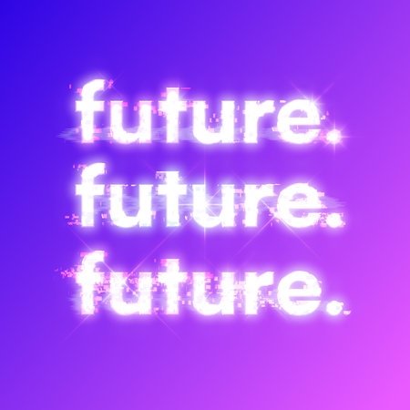 Cyberpunk style Stacked Glitching lowercase FUTURE typography illustration, purple gradient background