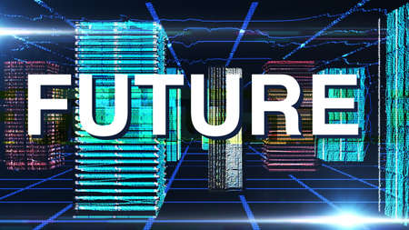 A captivating image showcasing the word FUTURE in neon against a backdrop of digital elements, symbolizing technological progress.